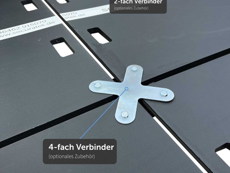 Erst das Zusammenspiel aus Schutzplatte und Gummi-Trennlage stellt sicher, dass Belastungen ortstreu aufgenommen werden, sich Platten nicht verschieben und Flächen dauerhaft geschont bleiben.