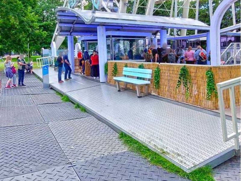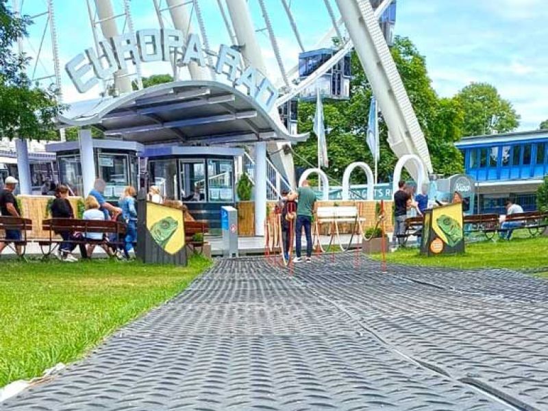 Veranstaltungen benötigen belastbare Wege für Besucher sowie für Auf- und Abbau. Vor dem Europa-Rad bündeln sich Personenströme, gleichzeitig müssen Service- und Rettungsfahrzeuge sicher passieren können. Ungeschützter Rasen ist dafür nicht ausgelegt.