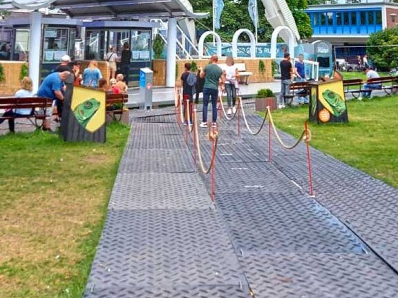Matschige Vorflächen kosten Umsatz und Vertrauen. Befestigte Wege sorgen dafür, dass Attraktionen erreichbar bleiben, Besucher länger verweilen und Rettungs- sowie Servicefahrzeuge jederzeit zufahren können.