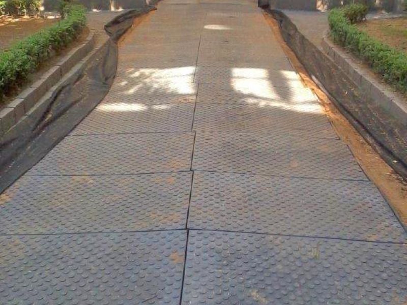 Darüber wurden Bodenmatten aus robustem Weich-PVC verlegt. Mit ihren 44 Millimetern Stärke bieten sie festen Halt, dämpfen Erschütterungen und verteilen schwere Lasten gleichmäßig. So konnten sich Fußgänger, Geräte und Maschinen sicher bewegen, ohne den Untergrund zu gefährden.